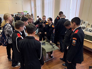 На переменах волонтёры знакомят учеников с фотографиями военных лет и настоящими экспонатами, найденными во время поисковых работ на местах боёв. Каждый экспонат — это частичка памяти, живая история, которую можно увидеть и прикоснуться!