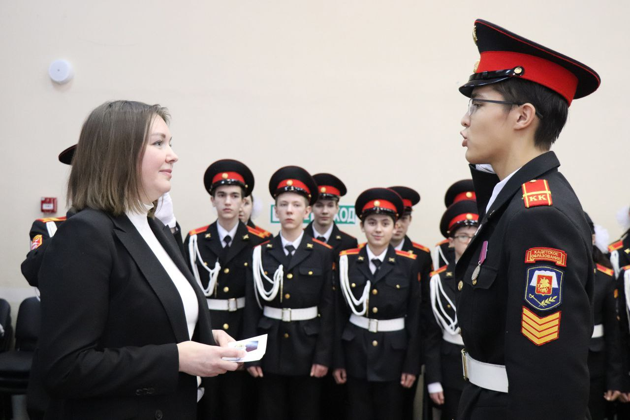 В канун Дня кадета и Дня защитника Отечества в актовом зале школы состоялось торжественное награждение обучающихся кадетских классов. Ученикам присваивались очередные кадетских званий и вручались награды за успехи в обучении и активное участие в кадетских и юнармейских конкурсах Москвы.